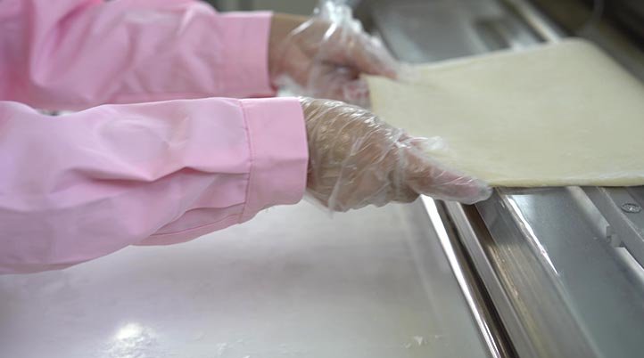 ◆ 五次調檔疊壓,鍛煉形成緊密而又韌性的網狀面筋。