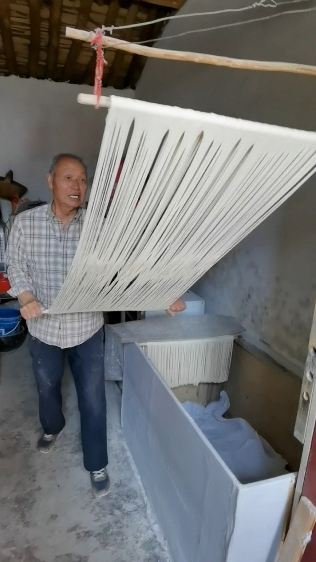 傳統手工掛面在我國已有1500多年的歷史,不同地域都有不同的名稱和叫法,如新疆拉條子、陜西空心面、福建線面、藁城宮面、中江手工掛面等等。它們以優質小麥為原料,經過和面、壓面、盤盆、醒發、搓條、粗拉、細拉、繞桿、拉伸、烘干等十八道工序制作而成,工藝繁瑣、復雜。制面人傳承千百年的傳統技術精心制作,在整個制面過程中對“手法和技巧”有很高的要求。手工面口感爽滑軟彈、營養健康,屬干掛面中的“天花板”。